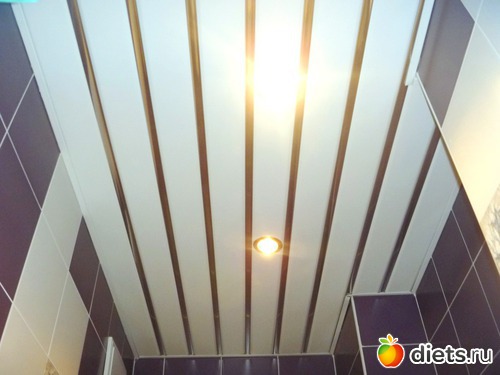 Потолок сделали реечный с двумя галогеновыми светильниками