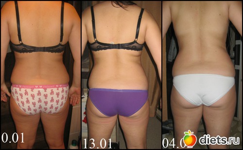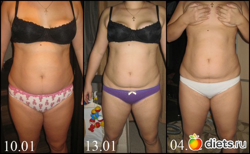 Вообщем начала делать Джилиан Майкс пресс за 6 недель, но потом Маша (дочка 1,5 года) не давала. Стала прыгать на меня и я перестала. Потом диета Дюкана, на ней ушло в неделю по 1 см и пару кг, вес стал 81. Но мне было очень тяжело и плохо с туалетом (уж простите).