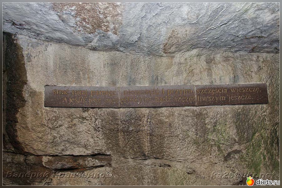 от входа на правой стене остались выдолбленные в стене две строчки на польском языке, которые принадлежат, как утверждает