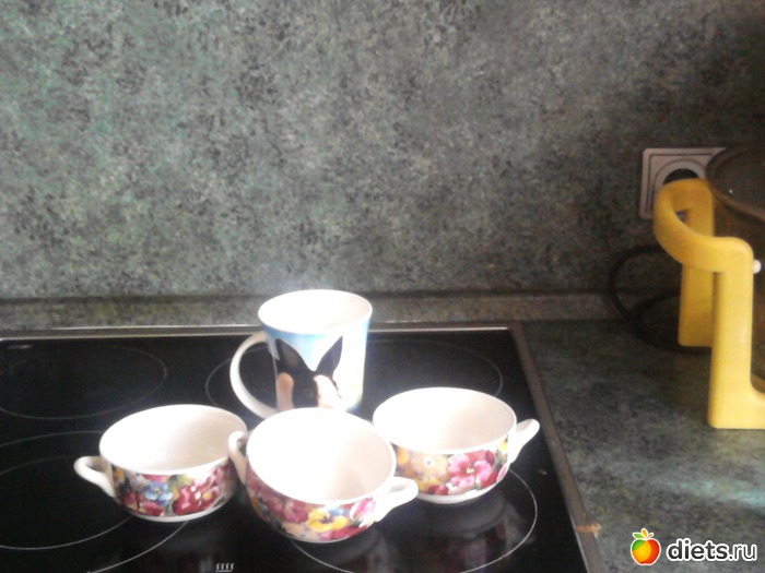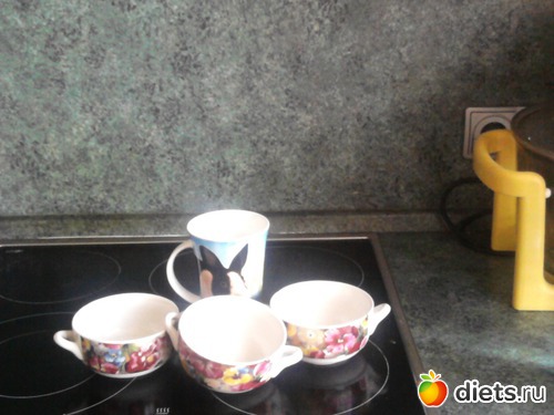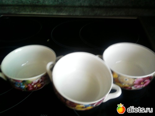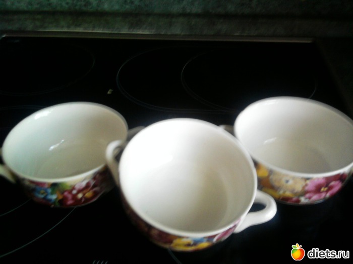 Мужу дарили набор пиалок, которые валяюся без дела. Решила приспособить их вместо тарелок.