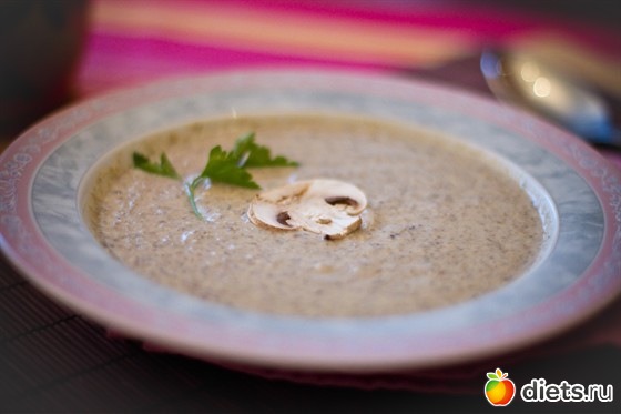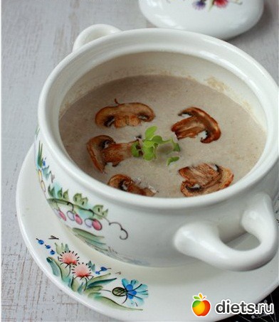 Наливаем по тарелочкам, сверху украшаем обжаренным ломтиком шампиньона и с удовольствием кушаем нежный сливочный сытный супчик.