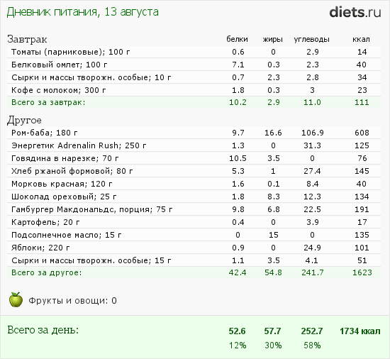 Рацион соответствует состоянию. Вечером глянула на количество калорий за день и стойко держалась - пила кофе и ела яблоки. поездка в Викторию и покупка божественных (я не вру!) ромовых баб, конечно, сильно подпортила статистику.