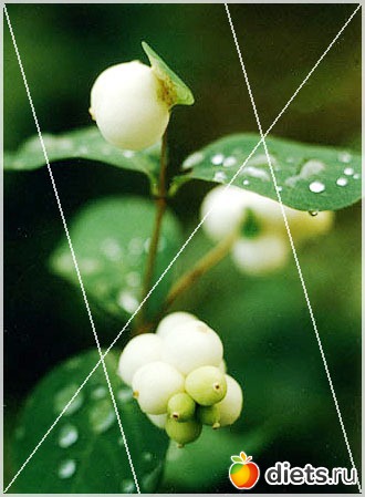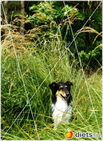 Наложим диагональную сетку на изображение таким образом, как показано на фотографии ниже. Главные объекты изображения должны быть расположены в полученных секциях.