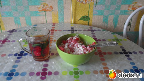 Ужинала в 18-30 В зернистый творог порезала помидорку.
