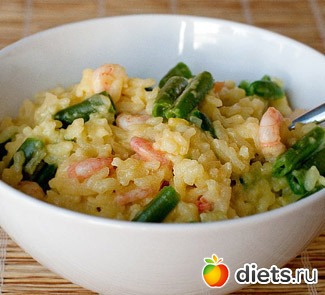 А тут все собралось: и креветки, и зеленая фасоль, и рис для ризотто, который мой понтовый муж приобрел взамен круглого краснодарского.