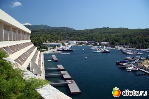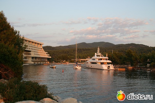 Море сказочное - бирюзово-синее. Погода сказочная-не жарко и не прохладно. Тут сразу за территорией отеля начинается фантастический сосновый лес-воздух от него обалденный! Но, зараза, там столько слепней или оводов, я в них не разбираюсь, но достают и норовят кусаться, гады. Поэтому в основном гулять ходим вечером вокруг марины, а в лесу только несколько раз побывала. И не убереглась. Третьего дня один мерзавец-таки укусил, и ведь надо же, прямо... ээээ.. в бюст! В итоге - как в анекдоте ("боль снимите, а опухоль оставьте") - бюст увеличился на один номер. Правда, только слева и только на полдня. Так что пользоваться этим средством не рекомендую.