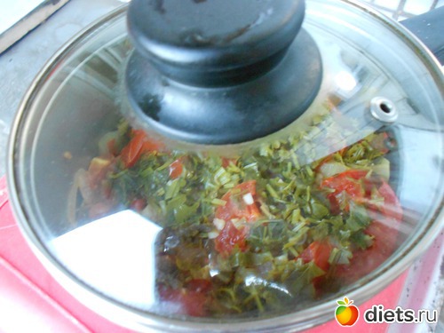 Закрываем плотно крышкой и томим все на очень медленном огне примерно полчаса: