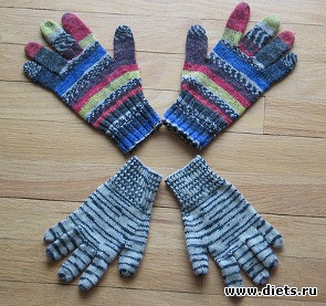 Перчатко-варежки с «откидным верхом». Забавная и довольно практичная модель – к коротким вязаным митенкам сверху крепится «чехол», который при необходимости прикрывает все пальцы сразу, как варежка.