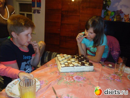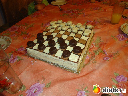 "шашки"- это обрезки торта(вырезала крышкой от водки