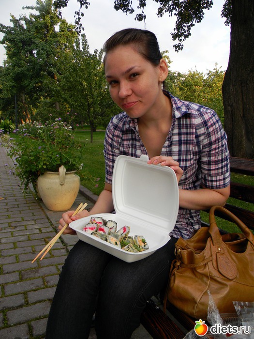 Потом решили воплотить идею о куче роллов и их поедании в Коломенском. Сбылось)) Правда ждали мы эти роллы в весьма странном кафе, смотря фильм про животных (и свиней в частности) и слушая совсем-совсем не японскую музыку