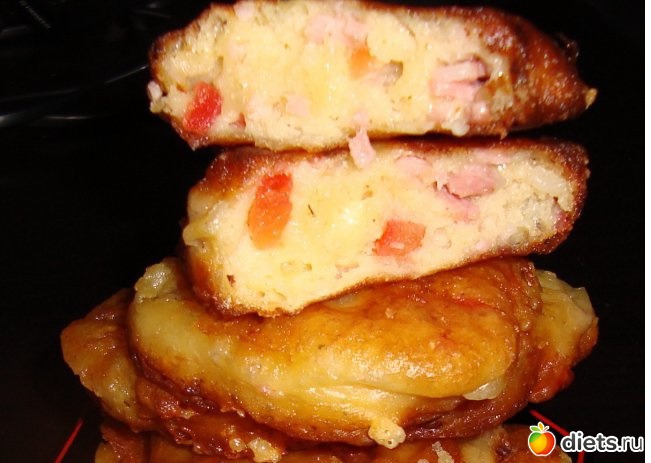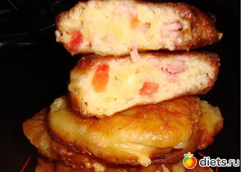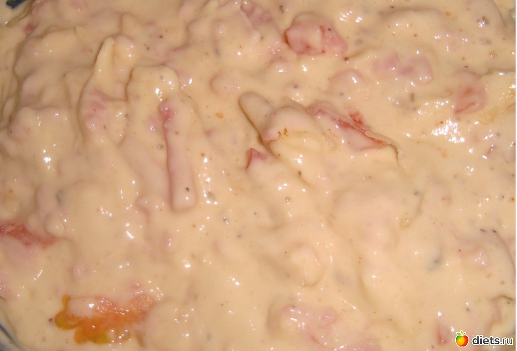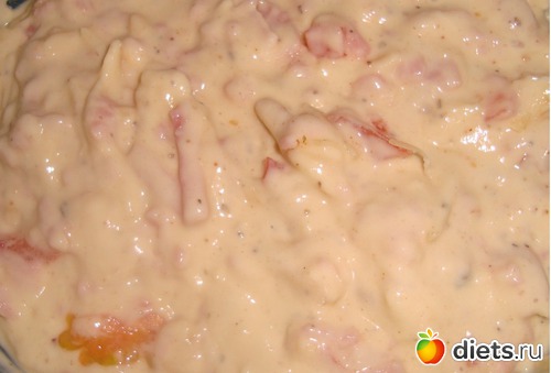 Мелко режем ветчину, помидор - это в данном случае (грибы, перец сладкий, оливки, зелень и т.п., в общем то, с чем вы любите обычную пиццу. Каждый делает на свой вкус)