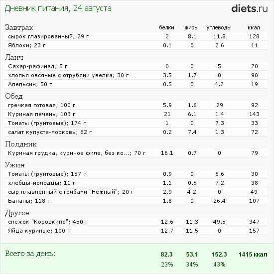 мда уж, попочка с ляшечками у меня ужасненькие, ну ни че, бум исправлять))также выставляю свой дневник питания, вот не знаю, я придерживаюсь 1500 ккал в день, может стоит больше кушать из-за физнагрузок, причем я еще кормлю грудью, где то читала, что ккал 500 идет на выработку молока, что посоветуете по этому поводу?