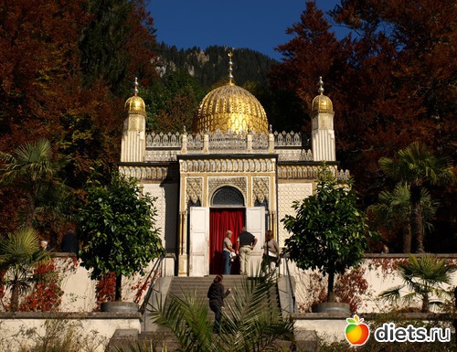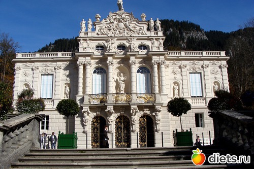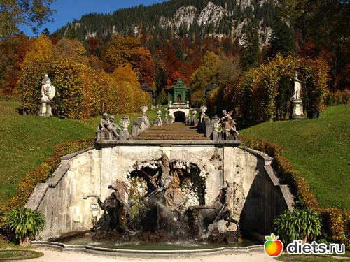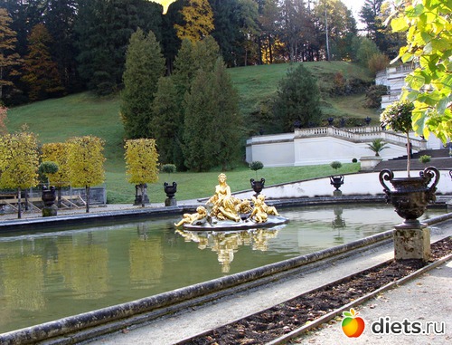 этот фонтан у замка Линдерхоф бьет каждый час по 5 минут на высоту 10 метров