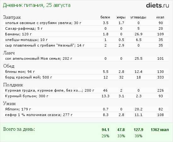 Калорийность продуктов