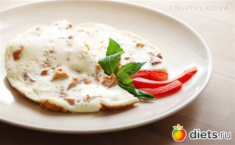 2. В это время взбейте 2 яйца, добавьте 2 столовые ложки мягкого обезжиренного творога, соль и перец, если необходимо. Взбейте тщательно все вместе до однородной массы.