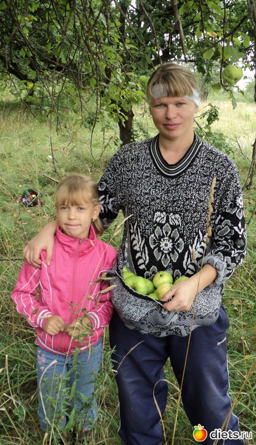 После картошки я с племяшкой, мужем моей сестры и женой моего брата поехали в колхозный сад за яблоками. Сад у нас заброшенный-никто за ним не ухаживает. Но яблоки ещё растут, в основном антоновка. Вот собственно и я с племяшечкой своей старшей. Не судите строго за мой вид-я после огорода вся грязная и потрепаная