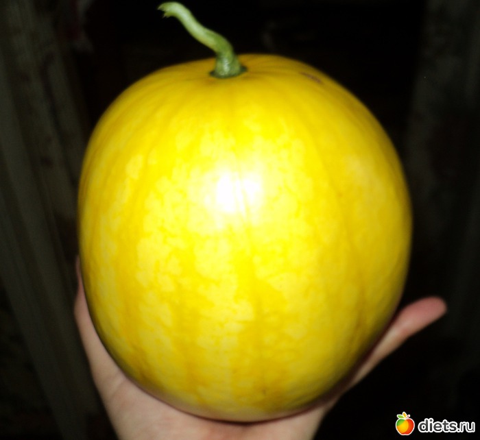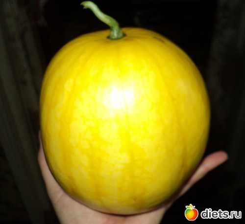 В сердцевинке было немного розовая мякоть))на вкус как арбуз, немого сладкий, только чуть-чуть травой отдает. Вот такое чудо у нас выросло без теплицы