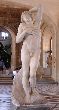 В 1505 году папа Юлий II снова призывает Микеланджело в Рим, где ему поручается создание надгробия папы; работы затянулись и были завершены только в 1545 году. Для надгробия был создан ряд статуй, в том числе "Моисея" и знаменитые статуи "Восставший раб" и "Умирающий раб".