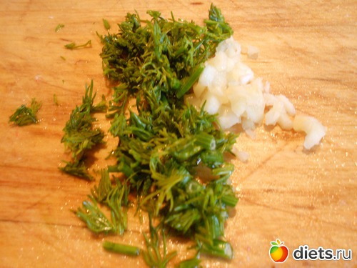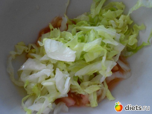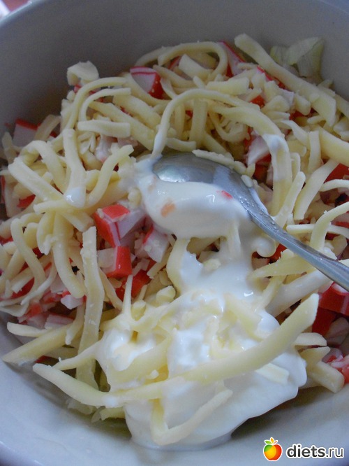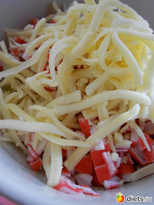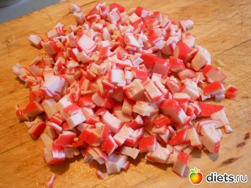 Потом очередь дошла до крабовых палочек - мелким кубиком.