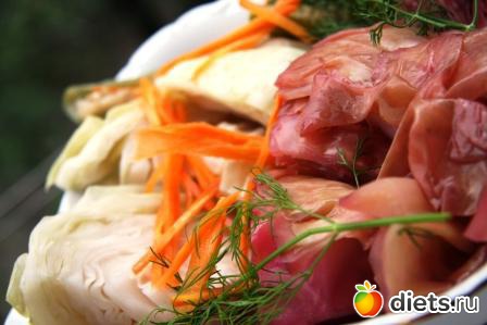 капустка Рассол: 1,5 л воды,3 ст. ложки соли и столько же сахара,10 горошин перца,5 шт. лаврового листа.