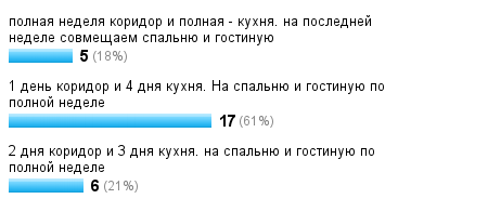 полная неделя коридор и полная - кухня. на последней неделе совмещаем спальню и гостиную