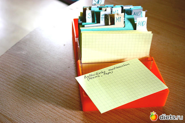 У меня есть набор карточек на каждый день. По мере их выполнения я кладу карточку в регистр следующего дня. есть карточка еженедельного задания. Я сделала это задание и перенесла эту карточку в регистр пятницы следующей недели.