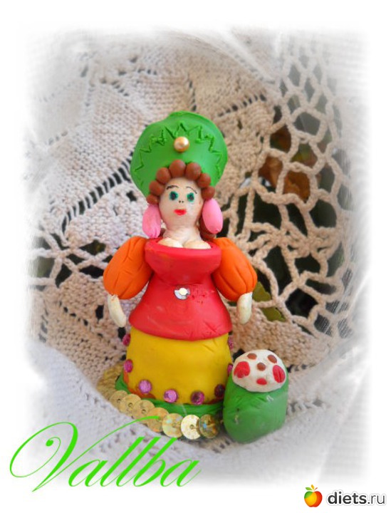 Пластилин в доме нашёлся в малом количестве, поэтому и сама скульптурка получилась крохотной,8 см вместе с короной...