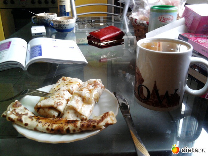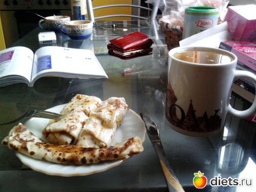 В 12,30 был второй завтрак- домашние блинчики с творогом- не сладкие+капля меда+ зеленый чай