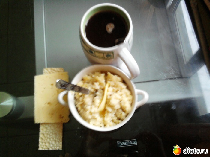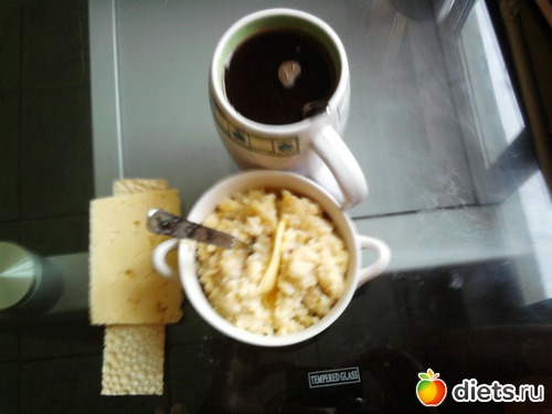 В 9.30 традиционно позавтракала пшенкой и хлебцем с сыром+ кофе без сахара