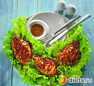 Перед подачей на стол разложить грудки на салатных листьях, политых заправкой.