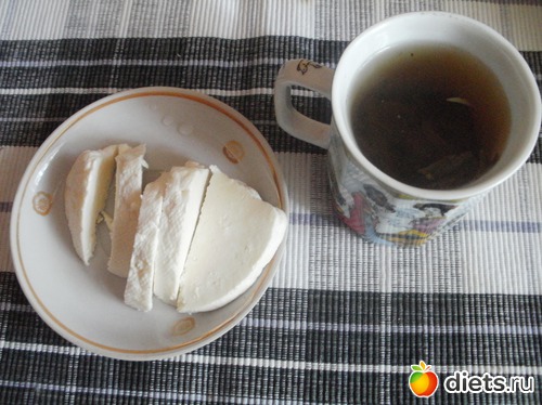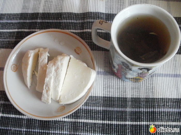 На перекус был сыр типа Адыгейский, и зелёный чай.
