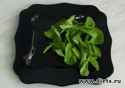 2. Рукколу промыть, выложить в салатник или на плоское блюдо.