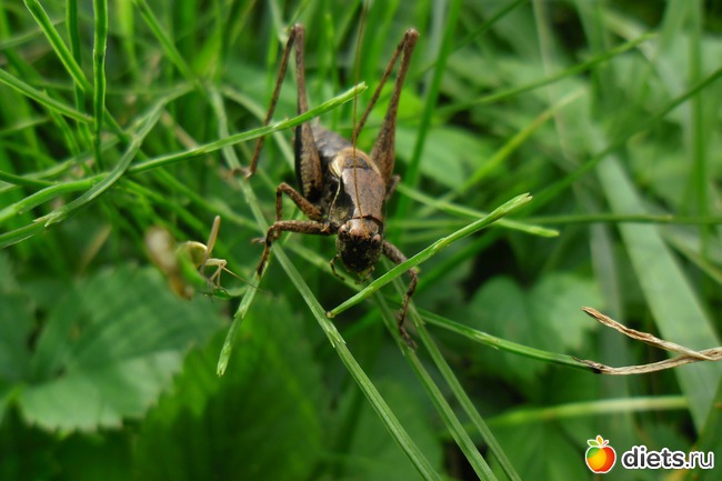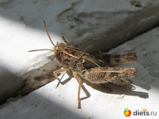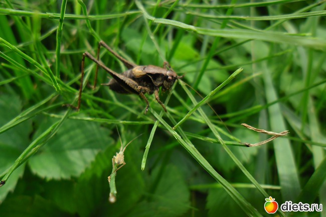 А это кузнечик, только не зелененький, а какой-то коричневый.