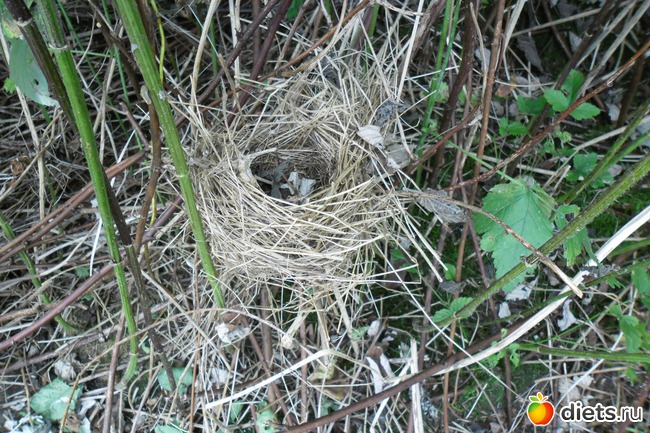 Это гнездо неизвестно кого, но птички я нашла у себя в старом малиннике! Уже без птичек - улетели.