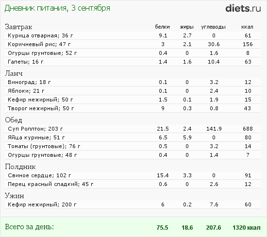 Калорийность продуктов