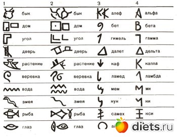 к XIII-XIV векам до н.э. Для своих символов финикийцы использовали знаки, которые уже употреблялись для обозначения слов. Так, знак, заменявший слово «бык» (по-финикийски aleph), стал обозначать звук «ah», символ, обозначавший слово «дом» (beth) – стал звуком «b», символ, заменявший слово «верблюд» (gimel) стал звуком «g» и т.д.