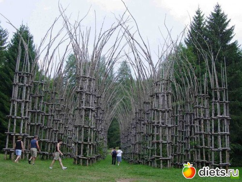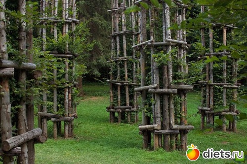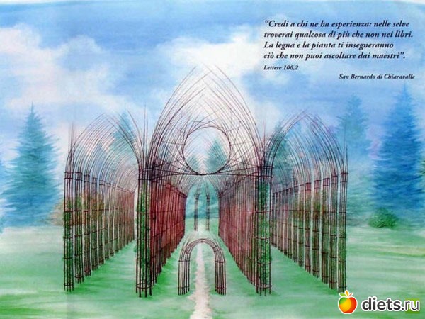 По задумке Джулиано, примерно через пятнадцать лет ограничивающие каркасы-колонны станут «тесноваты» для деревьев и, естественно, разрушатся. А сами грабы образуют естественную конструкцию настоящего собора из живого дерева.