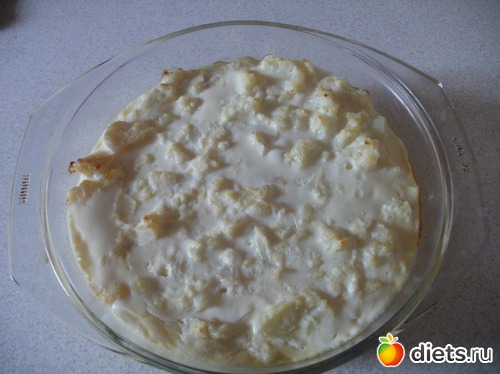 Второй завтрак. Запеканка из цветной капусты.(Отварная капуста 400 гр., творог 200 гр и три яйца, всё перемешать и на 25 минут в духовку)Вкусно. Но не сытно. Завтраки предыдущих дней на дольше давали насыщение.