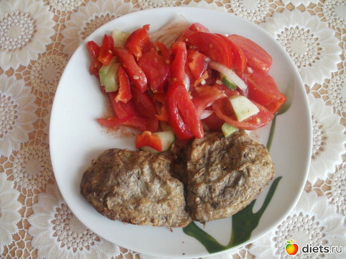 В обед были паровые котлетки из курогрудки с овощами и салат из осенних овощей.