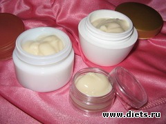 Далее берем крем(для лица ). Я выкладываю на разочек в отдельную миску чуть крем, пару капель сока алоэ и 2-3 капли меда. Наношу на лицо на 10-15 минут. У меня кожа сухая, поэтому все впитывается. Вы можете умыться.