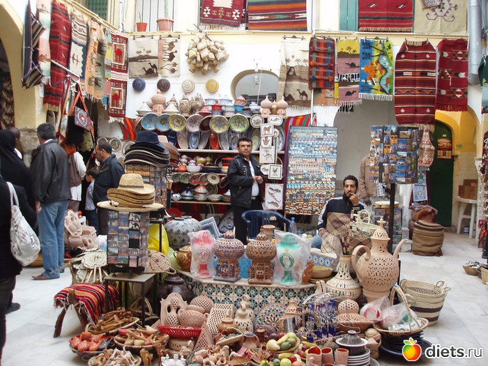 Рынок сувениров, золота, тканей изобилует товаром.