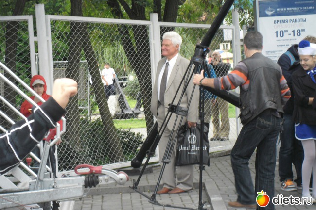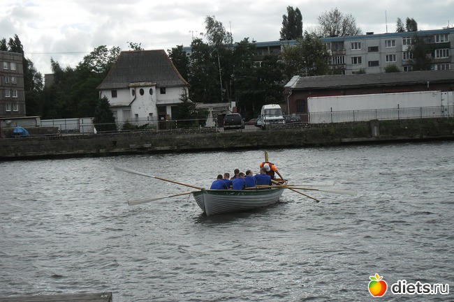 Победили в регате моряки Балтийского флота. На обычной гребной лодке, а это, обратите внимание, бывший адмирал Балтийского флота и наш бывший губернатор, он потом ребят награждать будет