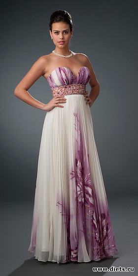 Помните, отдавая предпочтения одежде одного цвета, вы будете казаться выше, причем верхняя часть костюма должна быть светлее нижней. Платья с завышенной талией и длиной в пол, зрительно увеличат ваш рост.