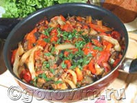 Выключить огонь и оставить овощи под крышкой, чтобы они пропитались вкусами, на 5-7 минут. Подавать рататуй горячим или холодным.