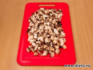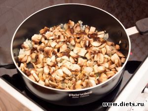 Добавить грибы, посолить, жарить до готовности (около 15 минут).
