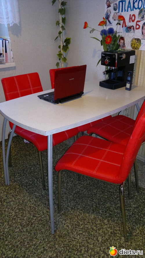 я тоже так устала сидеть на табуретках и дивана со спинкой у нас нет, так что стулья на кухне самый удобный вариант