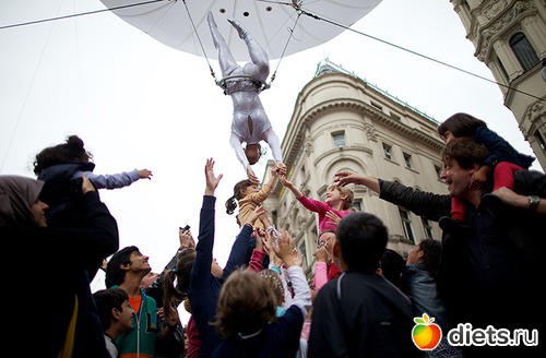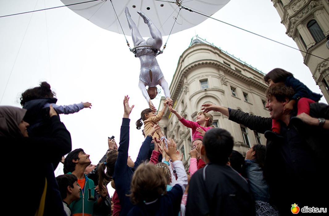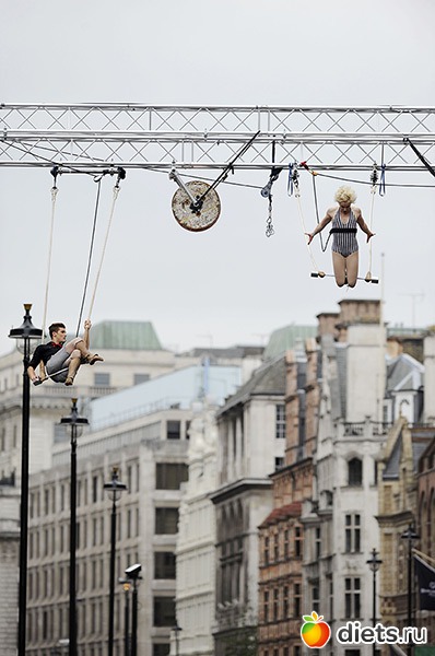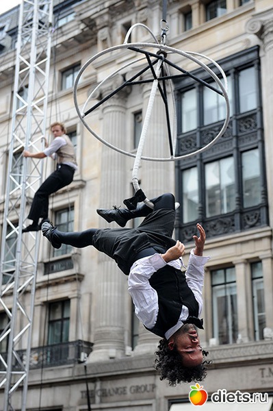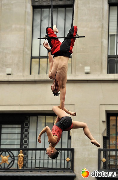 6. Гимнасты на трапециях высоко над улицей. (Ray Tang/Rex Features/Rex Features)