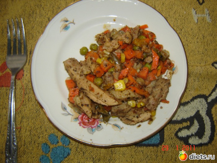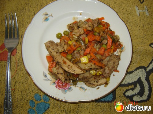 Я прошу прощения, мяско так ароматно пахло, что я не утерпела и попробовала, поэтому вилка на фото получилась уже использованной