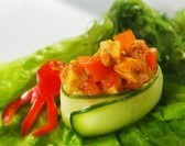 Огурцы вымыть и нарезать тонкими продольными пластинами. Из риса сформовать небольшие шарики – гунканмаки. Обернуть каждый полоской огурца.