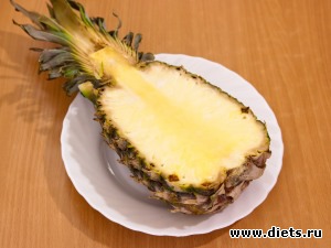 Ананас разрезать вдоль на 2 части.